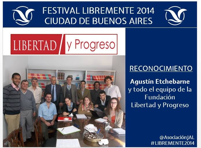 Desde Libertad y Progreso agradecemos a los organizadores del evento #LIBREMENTE2014 Buenos Aires, en particular a Jóvenes Argentinos Liberales (JAL), por la distinción que le hicieran al trabajo de nuestra Fundación en sus tres años de vida.